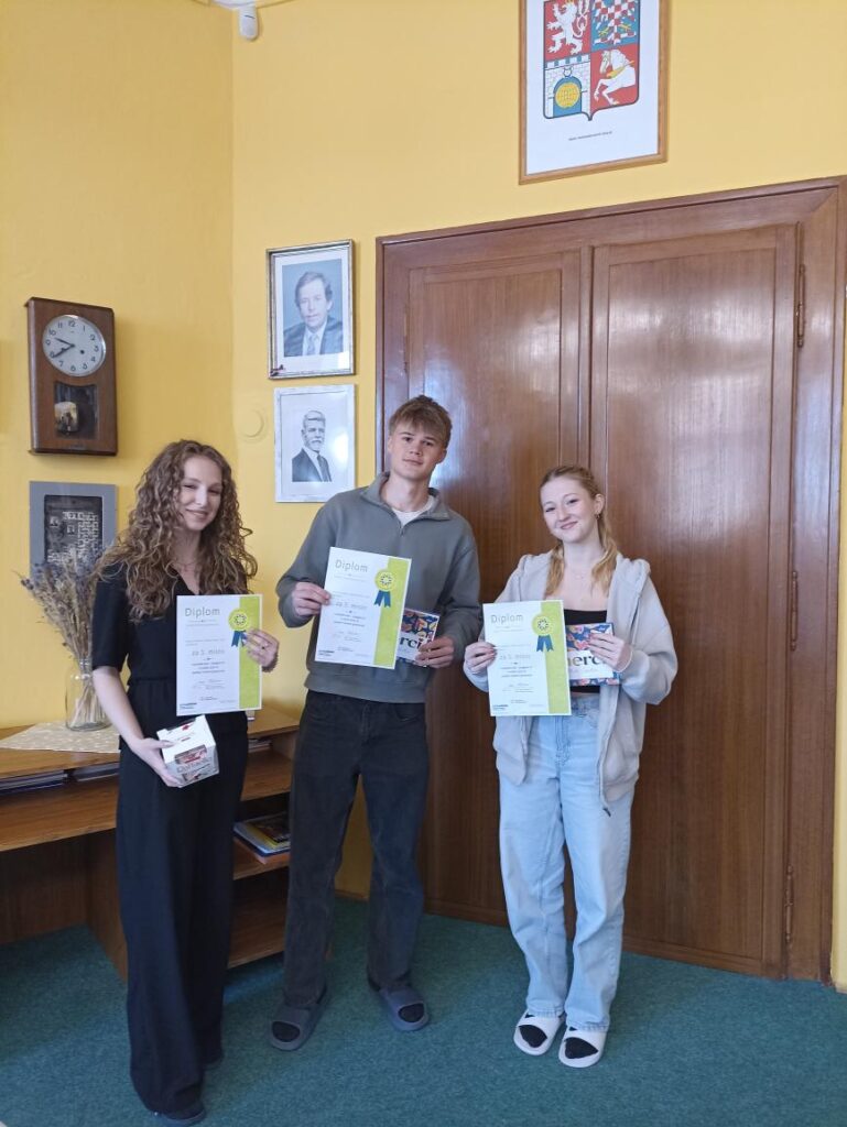 Snaha našeho týmu ve složení: Radek Burkoň, Lucie Komžáková a Simona Mrázková (všichni 3. C) byla korunována krásným 3. místem v krajském kole soutěže. Gratulujeme a děkujeme za skvělou reprezentaci školy!