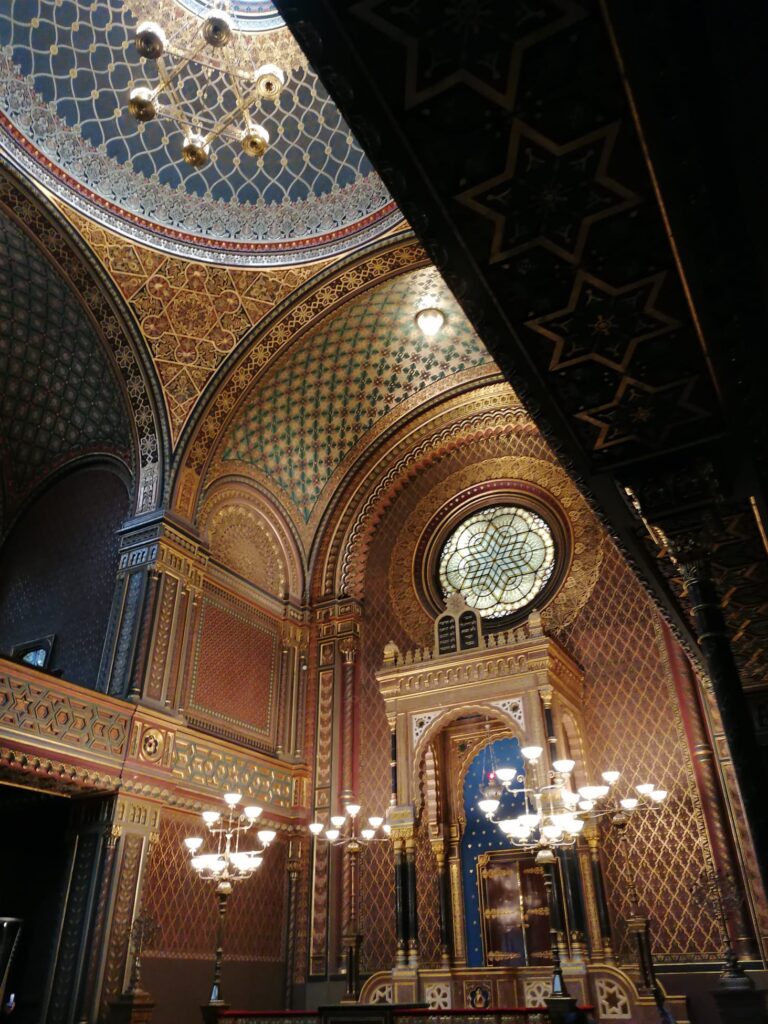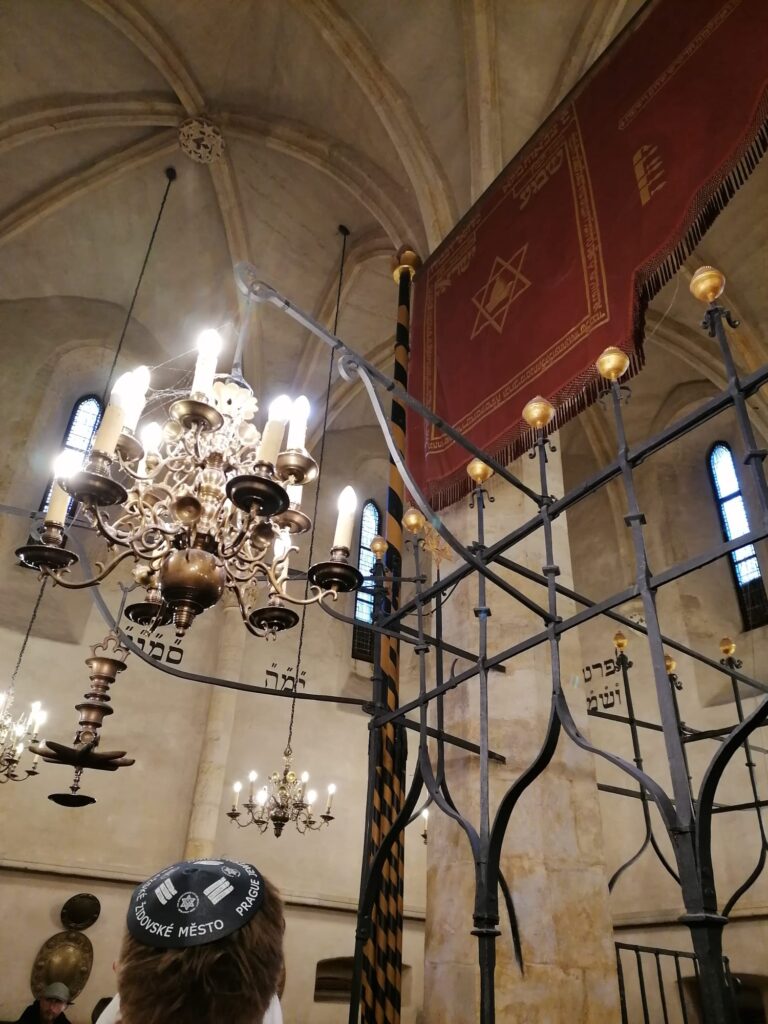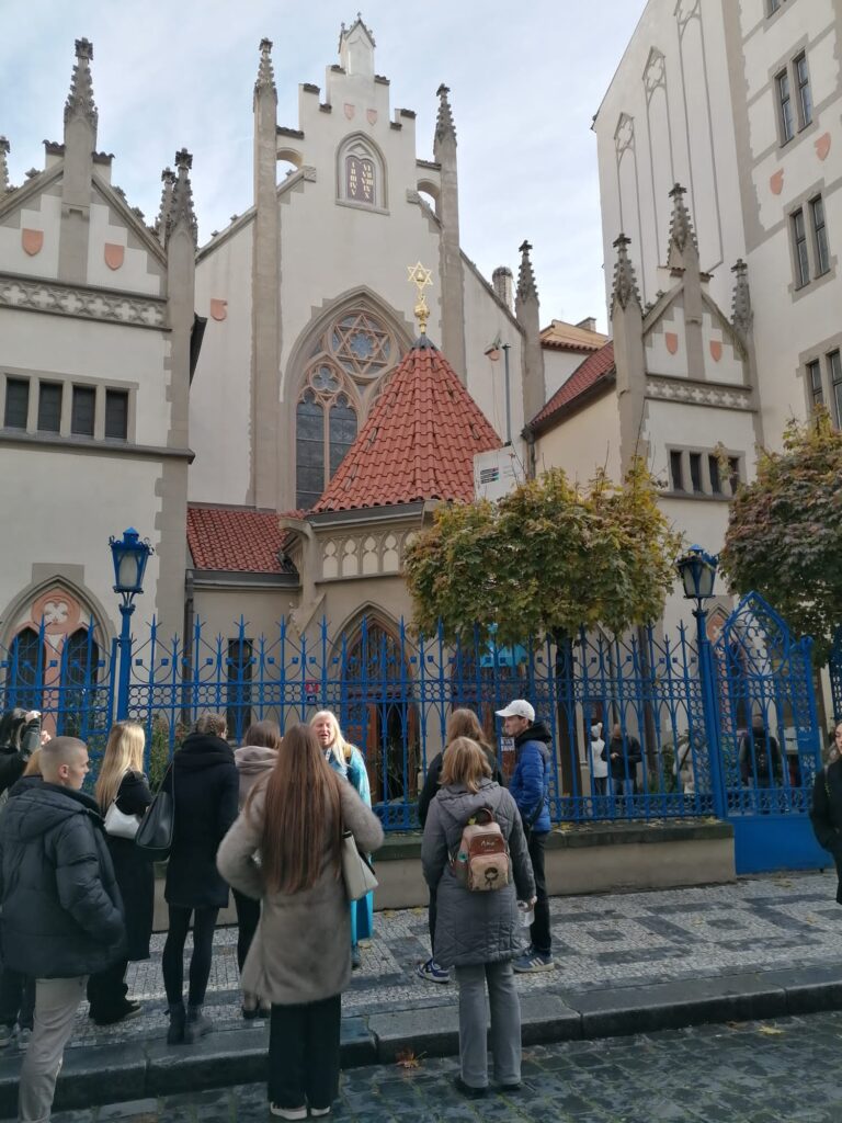 V úterý 11. 11. se zájemci ze 4. A vydali na poslední předmaturitní výlet. Jejich cílem byly památky našeho hlavního města, konkrétně objekty Židovského muzea. Exkurzi jsme zahájili v Maiselově ulici, kde se nás ujala průvodkyně Židovského muzea, usměvavá paní Slunečná. Ta nás nejprve zavedla do novogotické Maiselovy synagogy a seznámila nás se základními informacemi o židovské bohoslužbě a uspořádaní svatyní. Silně emotivním zážitkem pro mnohé z nás však byla návštěva Pinkasovy synagogy, která je dnes památníkem českých Židů, kteří zahynuli za druhé světové války. Poté naše cesta pokračovala na starý židovský hřbitov, kde jsou uloženy ostatky řady předních židovských osobností, včetně legendárního rabína Löwa. Naše kroky pak zamířily do Staronové synagogy, která je nejstarší svatyní židovské víry nejen u nás, ale i v celé Evropě. Naše putování skončilo prohlídkou reformní Španělské synagogy.