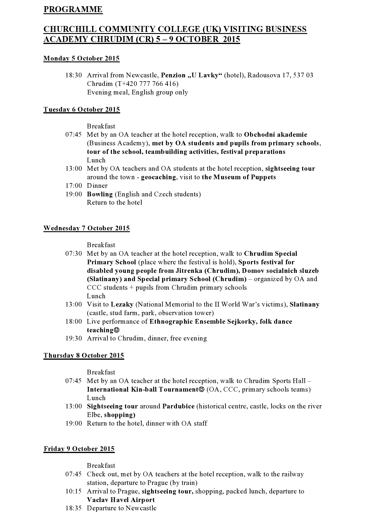 Návštěva studentů z partnerské školy Churchill Community College v Newcastlu (Anglie)