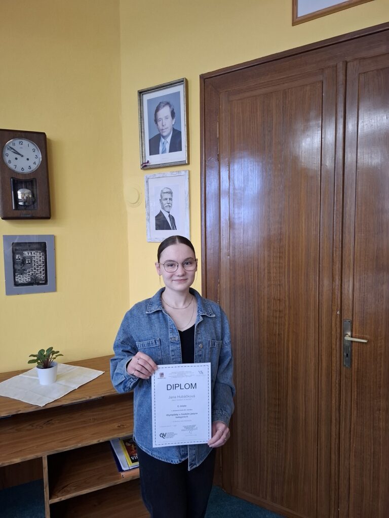 Dne 27.1. se Jana Hubáčková ze 3.C zúčastnila okresního kola Olympiády v českém jazyce a podařilo se jí umístit na druhém místě.
