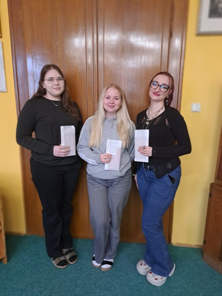 Vítězství v rámci školy (a zároveň vynikající 12. místo v semifinále) patří Kláře Suché ze 4. C, druhé místo získala Marie Škopová ze 4. B a třetí místo obsadila Linda Löwyová ze 4. A.