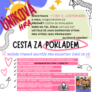 Ve středu 12. listopadu se studenti opět vydají na Cestu za pokladem, tradiční soutěž Obchodní akademie Chrudim.
