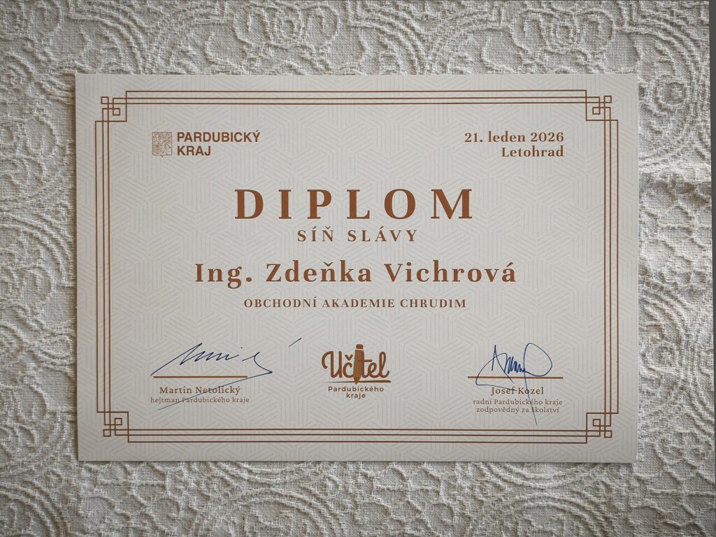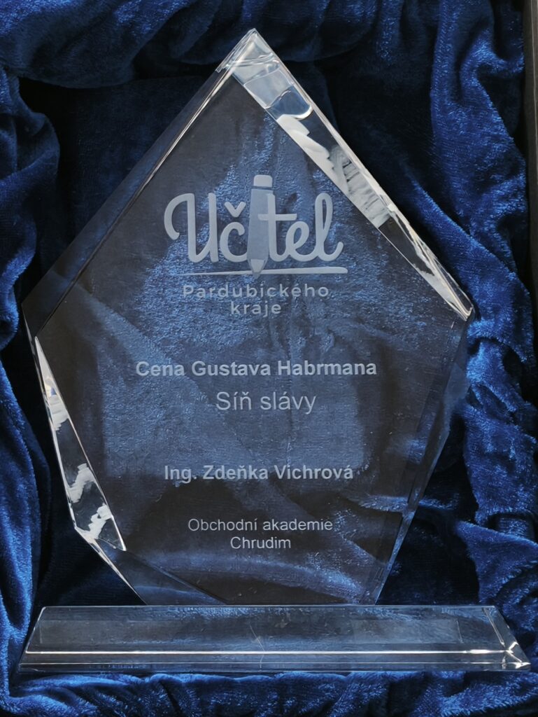 Významného ocenění se dostalo dlouholeté ředitelce Obchodní akademie v Chrudimi paní Ing. Zdeňce Vichrové. V rámci udílení cen Učitel Pardubického kraje získala Cenu Gustava Habrmana a vstoupila do Síně slávy za celoživotní přínos v oblasti školství.